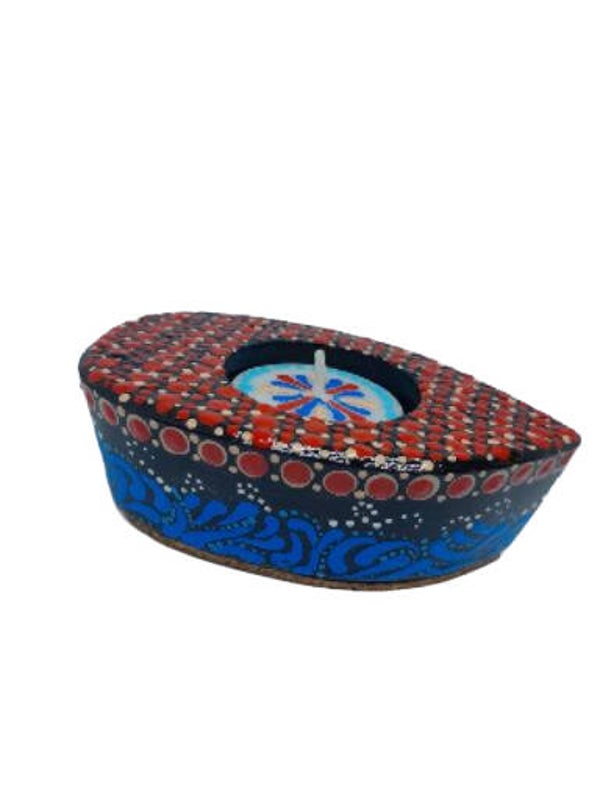 Enhance your space with the elegant ship design of our tea light holder. This decorative item not only provides ambient lighting but also features intricate acrylic painting in a mesmerizing mandala style. Add a touch of sophistication to your home decor with our exquisite tea light holder.