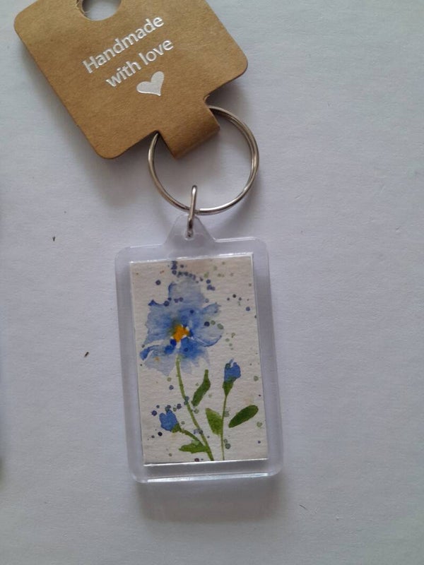 This pack of three keyrings features durable acrylic construction, ensuring long-lasting use for daily needs. Each keyring showcases an original miniature watercolor design, adding a unique and artistic touch. Lightweight and compact, they are a practical accessory for organizing your keys with style and convenience.